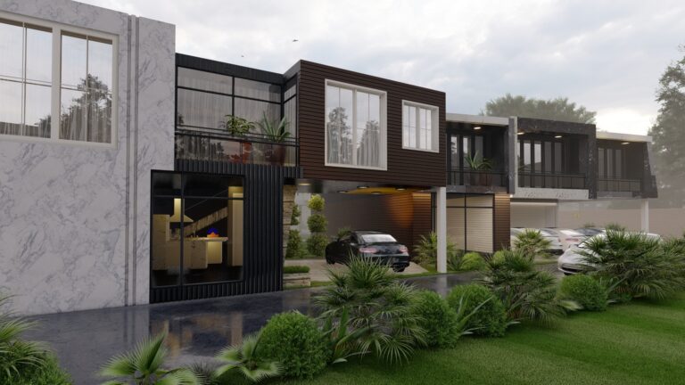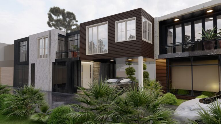 The client approached us with a clear vision: they wanted a development that stood out, something truly unified yet allowing for distinction between units. However, the challenge was not just about creating striking façades—it was about achieving a harmonious balance between aesthetics, functionality, and the structural necessity of a connected row. As a multi-unit property, the design had to ensure that the rhythmic repetition of modern forms was equally impactful across the entire street frontage, presenting an inviting yet bold presence from every angle.